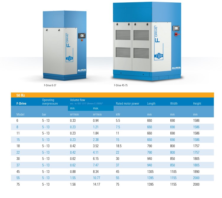 Частотно-керовані компресори серії F-Drive з прямим приводом застосовуються там, де необхідно отримати стиснене повітря за допомогою компактної, надзвичайно тихої та ефективної системи.